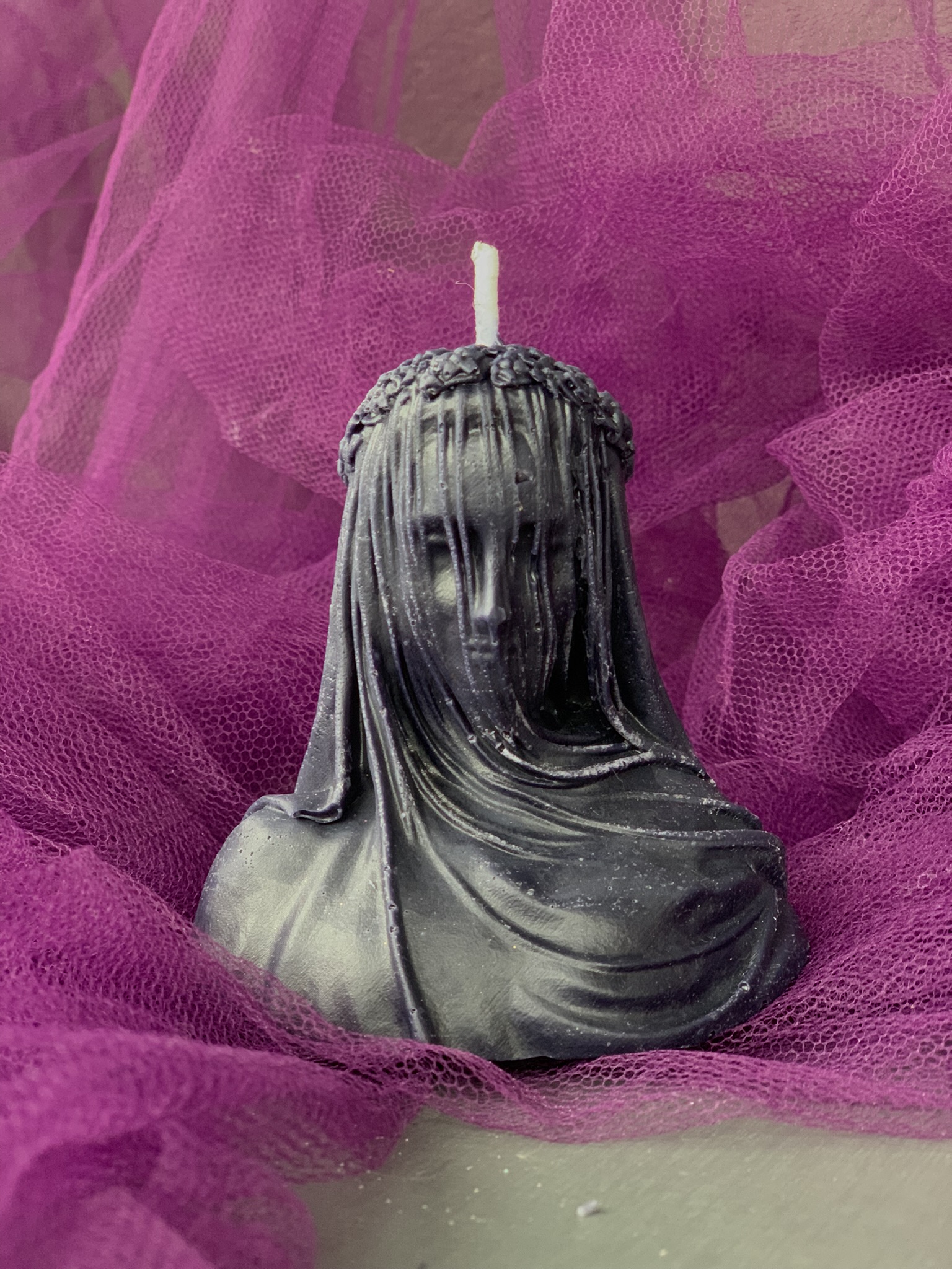 Baseada na obra de Giovanni Strazza "A virgem velada", essa vela nos remete à reflexão, força, silêncio, delicadeza e mistério.