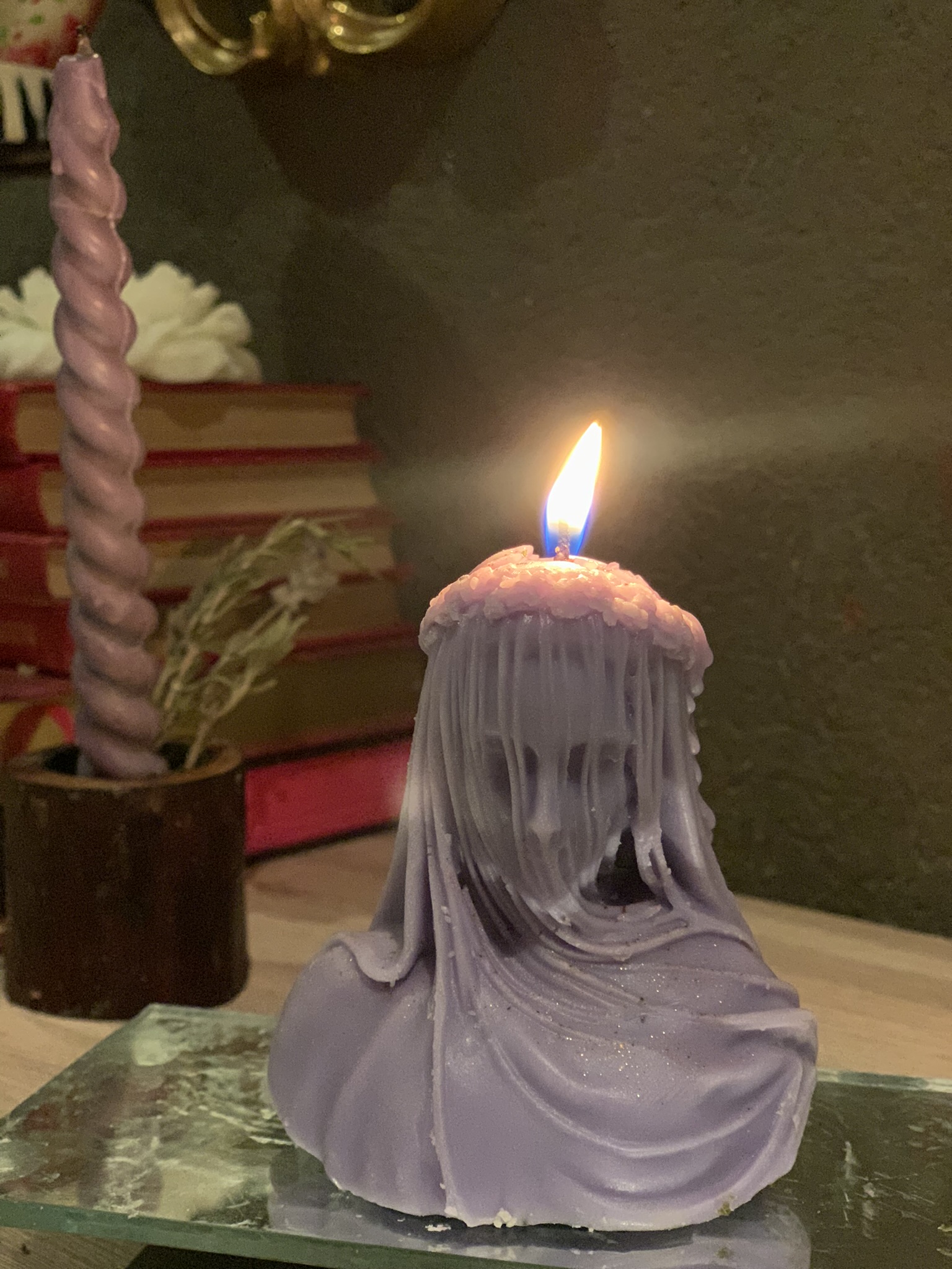 Baseada na obra de Giovanni Strazza "A virgem velada", essa vela nos remete à reflexão, força, silêncio, delicadeza e mistério.